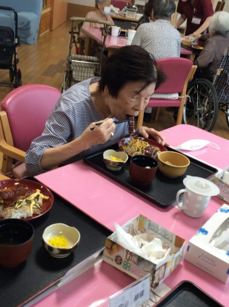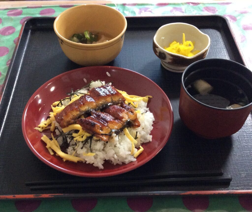 …そんなわけで、はるかの郷デイサービスでも、本日の昼食はうなぎ💕のPOWERを