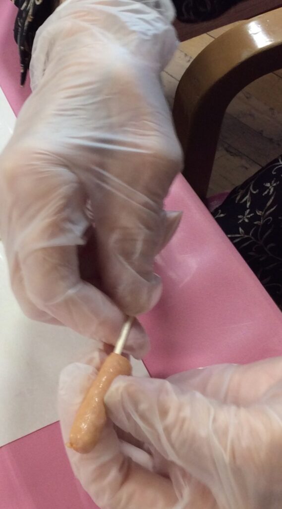 午前中は食事レクリエーションで「アメリカンドッグ作り🌭」!