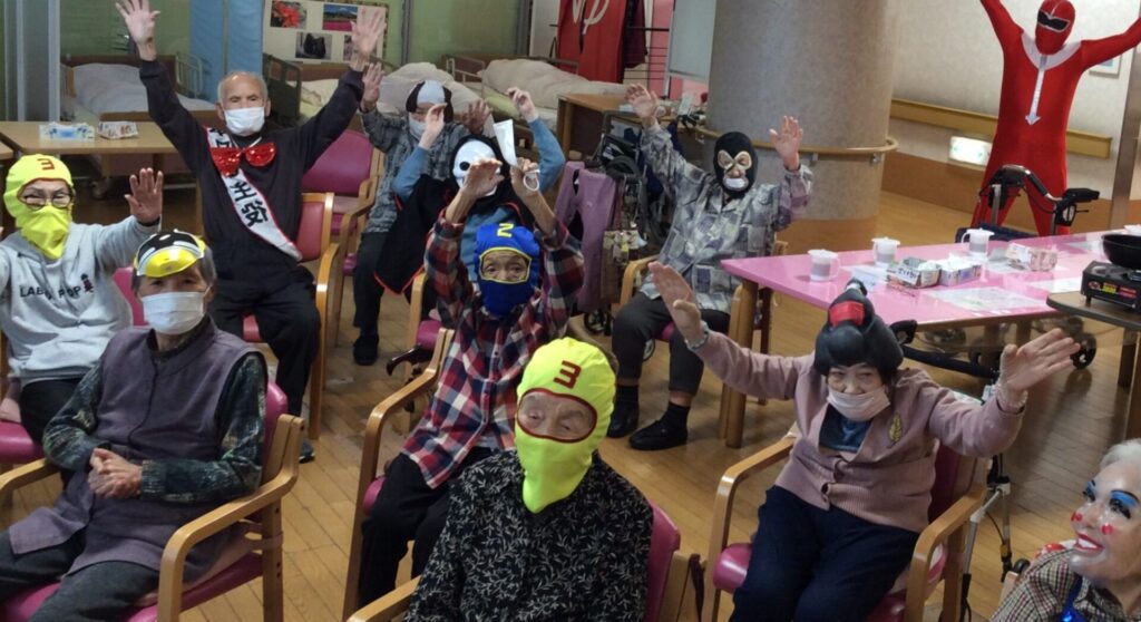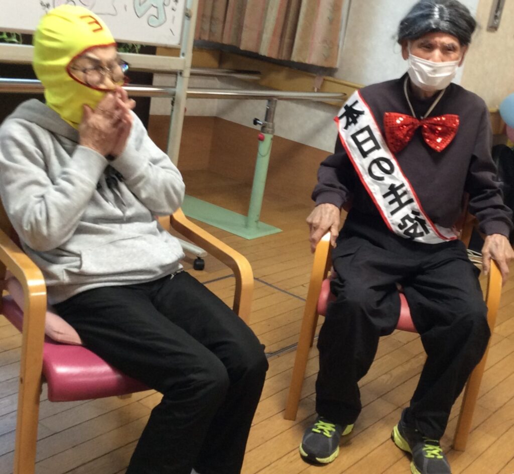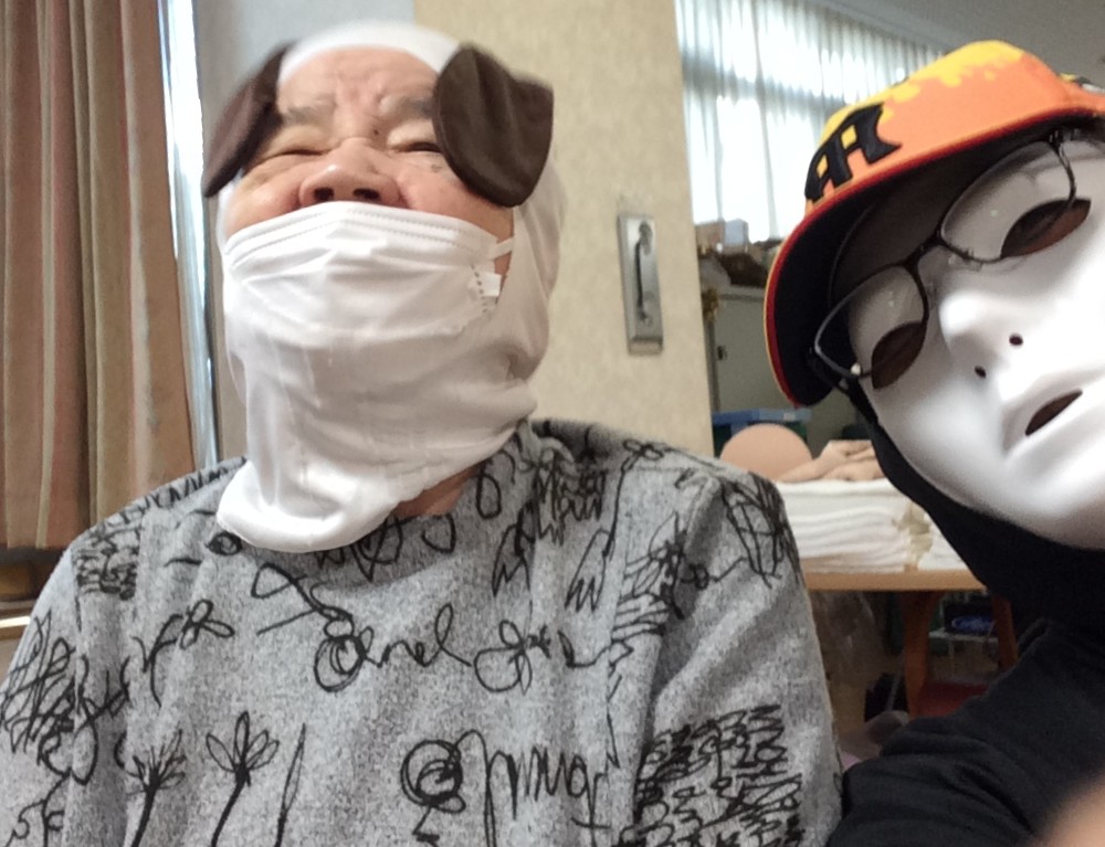 職員も利用者様も、マスク🎭やカツラ、スパッツ🥷などを身につけて大変身!