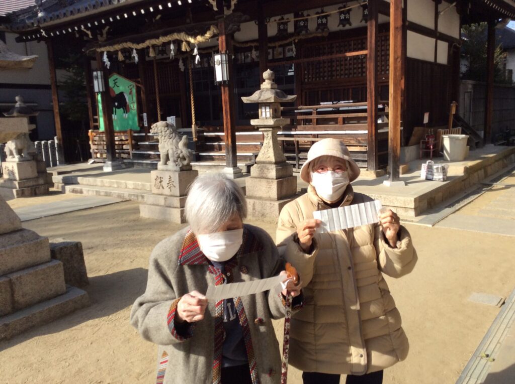 参拝後にはおみくじ📜を引かれる方も多く、「何が出るかな?😮」「ドキドキするわ😅」と、