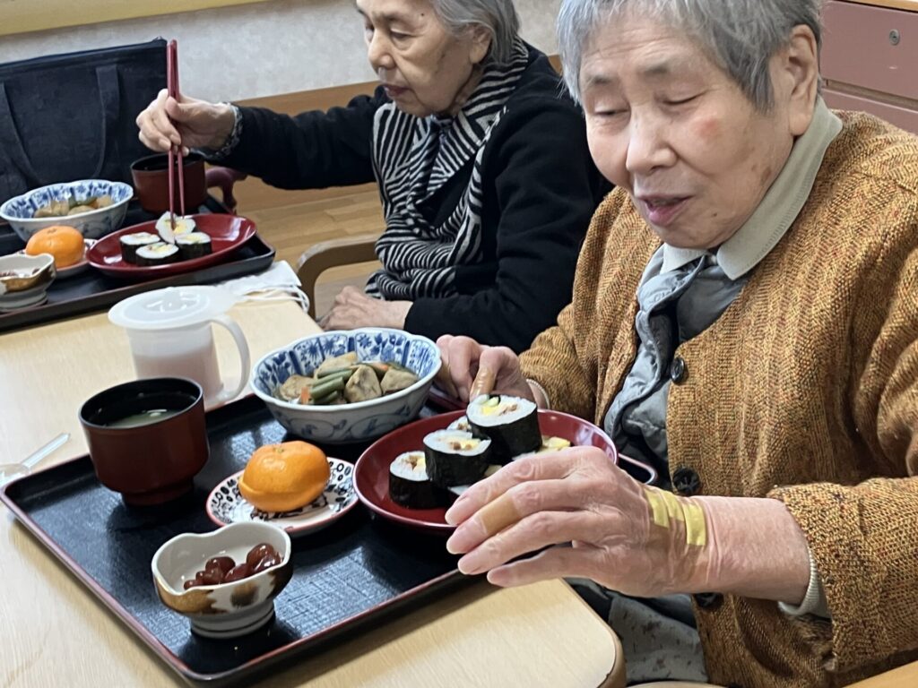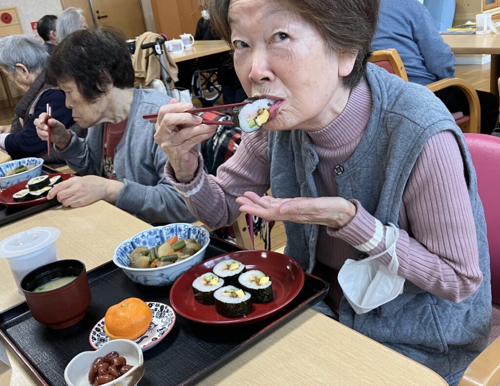 2026年の恵方は「南南東」です。願い事を思い浮かべながら、笑顔で召し上がっていただきました🥰